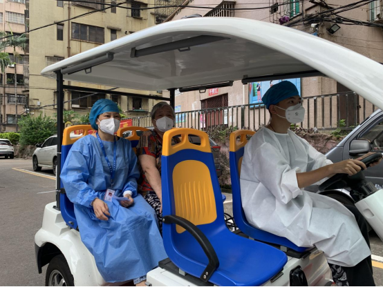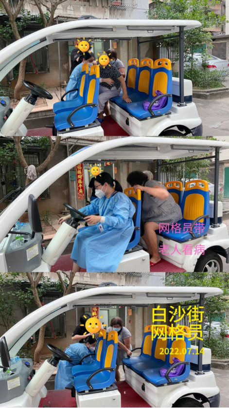 社区用网格车送黄婆婆到诊所就诊