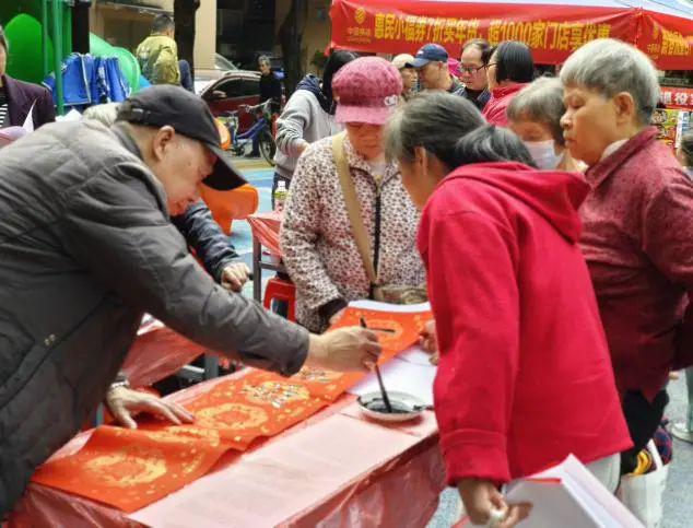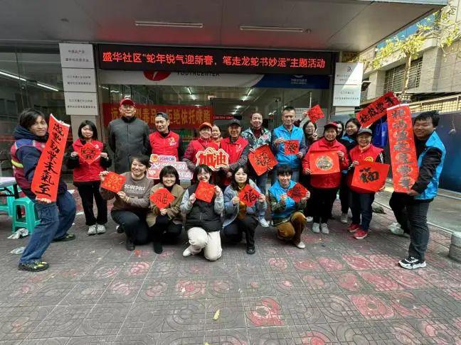 为营造欢乐祥和的节日氛围,弘扬中华传统文化,丰富居民的精神文化生活,1月10日上午盛华社区、启华社区联合江门农商银行、中国移动、爱尔新希望、侨邑口腔开展“蛇年锐气迎新春,笔走龙蛇书妙运”活动,为辖区居民送上一份满满传统文化的年味“礼包”。