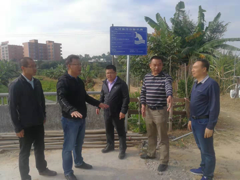 镇党委书记卢永生、镇委委员高豪领到新河社区巡查河道