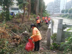 环卫站全体人员、道班及各班组环卫人员重点对新河天玥绿道进行现场清理杂草。