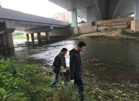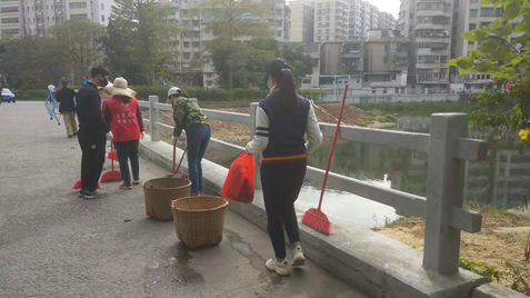 金朗社区清理河岸垃圾。
