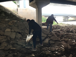 杜臂村分组对河岸、工业区环境整治。