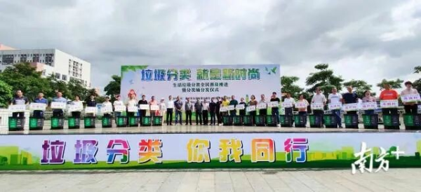 7月10日,澳洲幸运10 杜阮镇生活垃圾分类全民普及推进暨分类桶分发仪式在戴爱莲广场举行。活动现场向杜阮各村(居)发放首批3000多个分类垃圾桶。