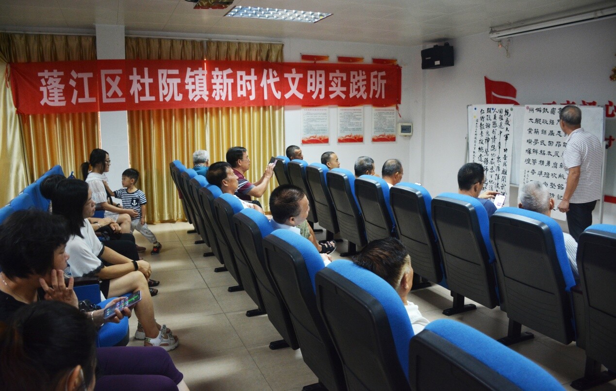 为传承和发扬中华优秀传统文化,提高我镇广大书法爱好者的艺术水平,增强对中华优秀传统文化的认同感、归属感和自豪感,杜阮镇新时代文明实践所于9月19日上午举办书法作品点评暨书法艺术辅导讲座,由江门市书法协会会员、阮川书美协会原协会长甘亮申先生进行授课,活动吸引了我镇20多名书法爱好者前来参与。