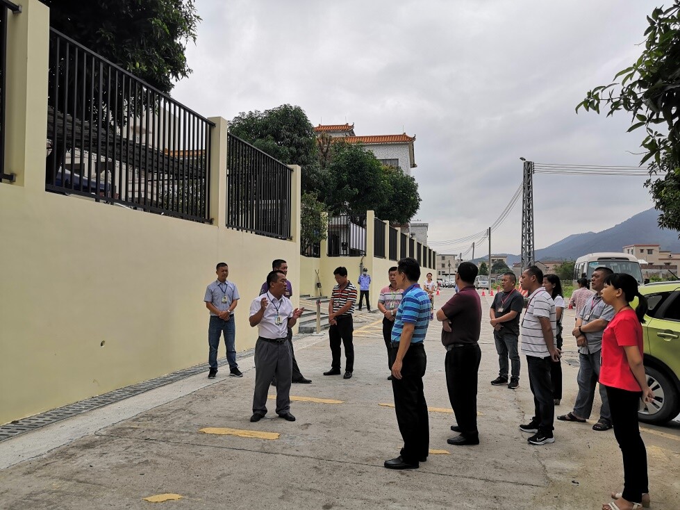 监督小组首先来到龙岭小学,现场看见学校崭新的围墙,工程实施迅速有序。据龙岭小学校长介绍,该小学两侧围墙和松岭门右侧的围墙均建于上世纪90年代,简易基础设计,后出现倾斜现象。为解决安全隐患,上级部门高度重视,已安排资金重建学校围墙。目前学校正门的围墙改造已完成,学校运动场侧的松岭门围墙由于靠近民房,落差较大,需要调整设计方案,工程预计10月初完成。