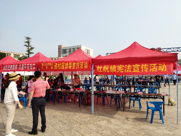 2020年11月18日早上,杜阮镇在戴爱莲广场举办了一场以“禁毒从你我做起、普法教育暖人心”为主题的法制宣传活动。此次活动得到镇委镇政府及各相关部门的大力支持,镇委委员亲临现场进行指导,镇司法所、综治维稳办、扫黑除恶办、创文办、派出所、安监局、工会、人社所等部门安排业务骨干人员到活动现场,并在法律咨询专区解答群众咨询问题。