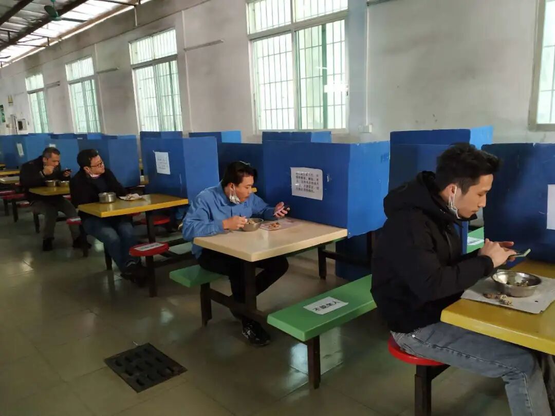 各企业作为防疫责任主体,严阵以待制定改造方案,同时想方设法,从细节入手做好疫情防控。其中,竞晖电器实业有限公司工会脑洞大开,在食堂餐桌中间加装隔板,变成相对独立的“格子间”,要求员工保持距离并朝同一方向就座用餐,避免“面对面”导致交叉感染。安迪科技有限公司在升级改造职工饭堂硬件配置的同时,对“就餐管理”也做了细致部署,延长饭堂开放时间,实行分批次就餐,减少人员集聚。