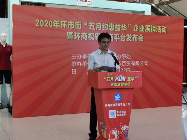 为贯彻落实市、区政府复工复产以及促进消费的工作部署,激发消费市场活力,共同促进生产企业健康发展,环市街道办事处于5月22-24日在江门益华广场举办环市街企业展销活动。今天上午在益华百货新翼简单而隆重地举办了展销活动揭幕暨环商视界招商平台发布会。为配合做好展销会,环市商会党支部及秘书处积极响应,组积极发动益华百货、竞晖、金羚、鹏中皇、菲普森、奥威斯、轻骑摩托车、大方旅游、派洛奇等20多家企业参加。同时,农商行环市支行、金地集团、万科房地产等金融、商贸企业也鼎力支持活动。
