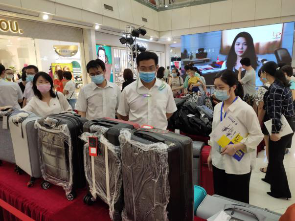 展销会现场汇集了箱包皮具、家电、金融、旅游等名优产品,环市街党工委书记李志华、环市街党工委副书记、办事处主任陈伟腾等办事处领导纷纷到各企业展位体验消费,同时通过各媒体传媒进行直播带货,将这次展销会的优质产品介绍给更多市民消费者。