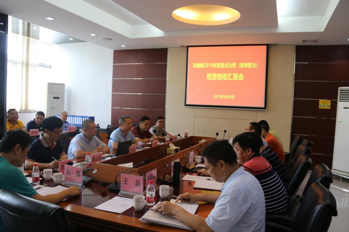 市考评组一行先认真听取了由荷塘镇党委书记区林杰作的整治工作汇报,汇报从背景分析、主要做法、工作成效、存在问题、下一步计划等五个方面进行阐述,表明荷塘镇2018年度涉恶问题整治到位,全镇治安问题管控得当,社会治安环境总体向好,群众安全感和满意度明显提高。副区长、公安分局局长李泗玲补充说明,荷塘镇2018年度的挂牌整治工作呈现“两下降,两上升”态势,即在警情下降、发案数下降的同时,打击力度上升、群众安全感和满意度上升,重点治理成效明显。