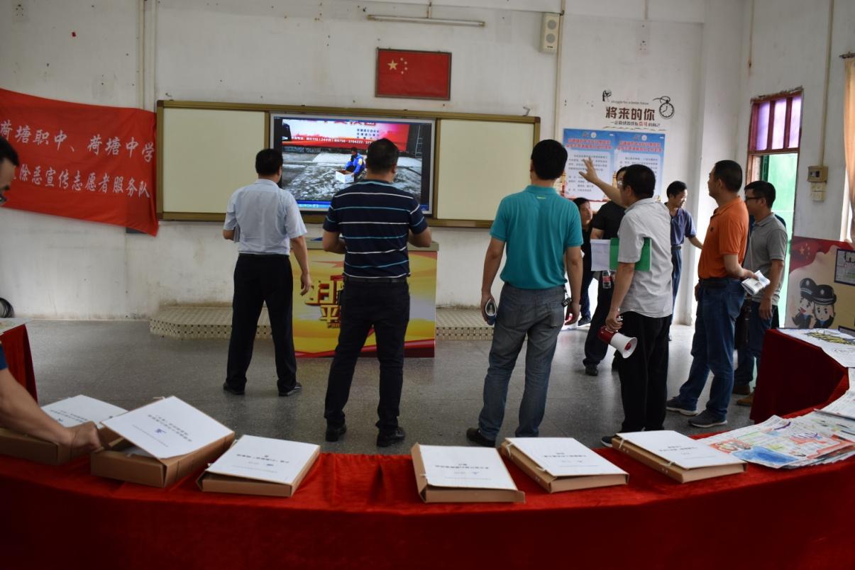 随后,考评组分成3个检查小组,第一检查小组对照验收标准,重点围绕整治情况、社会治安情况、社会治安防控体系建设情况三大方面开展检查,详细翻阅各类台账资料及查看档案卷宗;第二检查小组到荷塘镇联勤指挥室,实地检查综治信访维稳平台建设情况;第三检查小组到荷塘镇中心学校,实地检查学校校园及周边环境治理、整治涉恶问题宣传等情况。