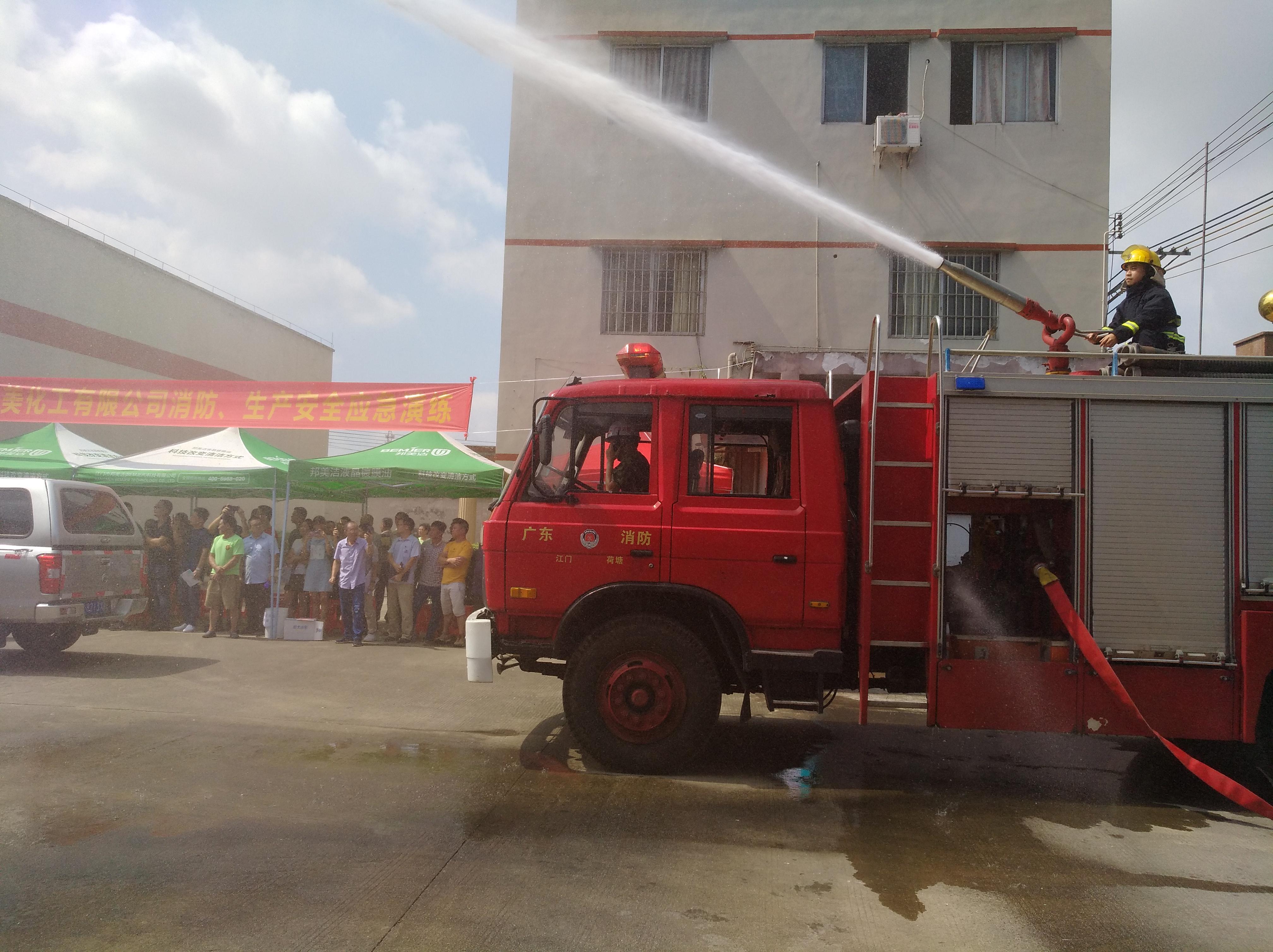 活动现场共有四项流程:一是由荷塘镇安监局负责人王伟国作动员讲话;二是由江门市国美化工有限公司负责人讲述如何配合专家开展日常安全生产管理工作;三是由镇消防专职中队、荷塘卫生院、江门市国美化工有限公司联合开展消防应急演练,并由专家对消防应急演练作点评,现场介绍对企业开展风险管控和隐患排除的相关措施和做法;四是现场进行安全生产咨询并参观车间管理情况。