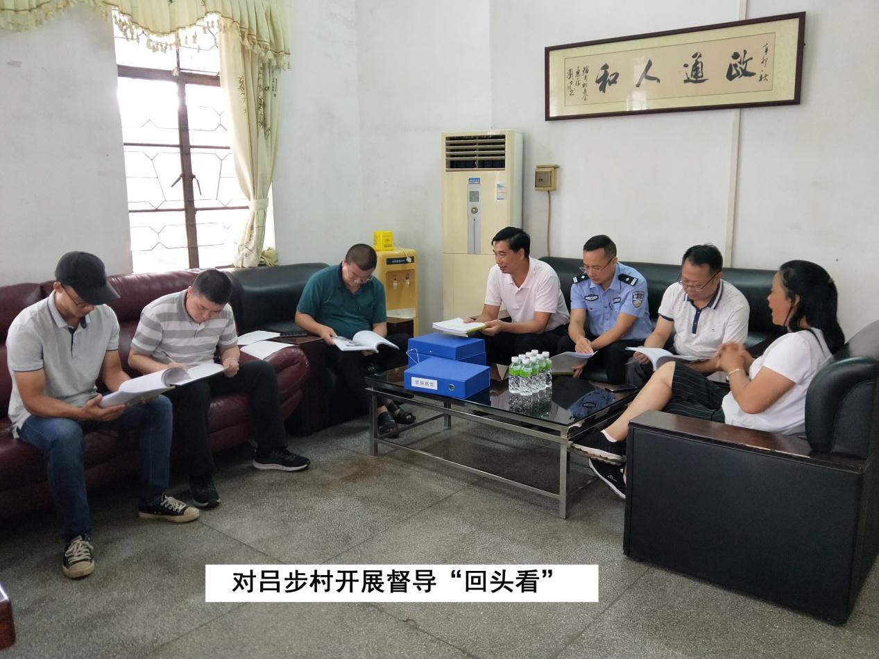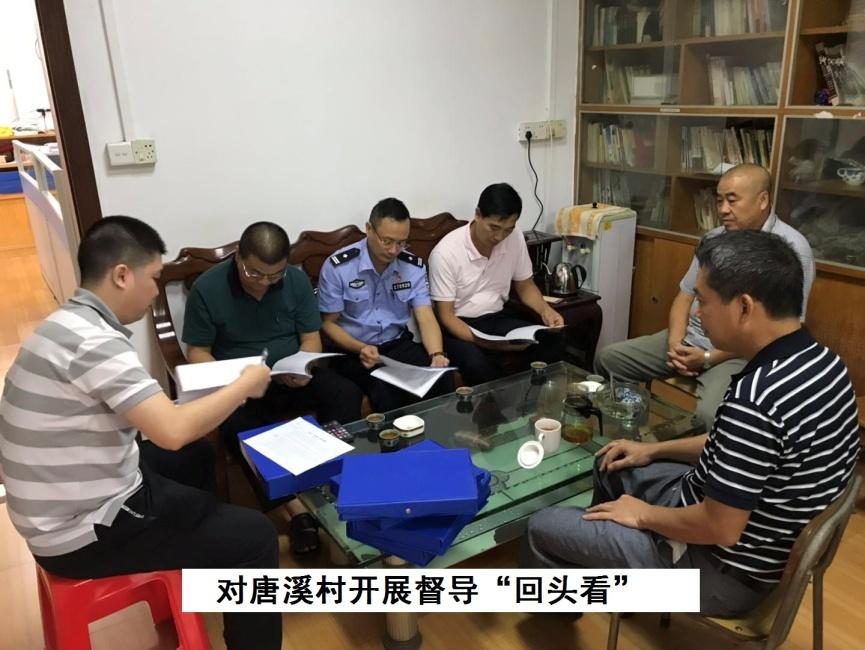 为推进扫黑除恶专项斗争工作深入开展,狠抓问题整改落实,7月11日上午,镇副主任科员黄伟雄率由镇纪委、荷塘派出所、镇扫黑除恶办有关人员组成的督导组,先后到吕步村、霞村村、唐溪村开展督导“回头看”。