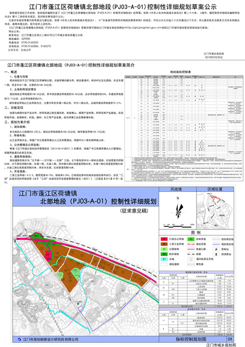 荷塘镇北部地段(PJ03-A-01)控制性详细规划草案公示