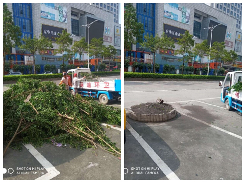 ▲环卫站清理路边倒伏树木、河道边蕉树、市区杂物及“牛皮癣”