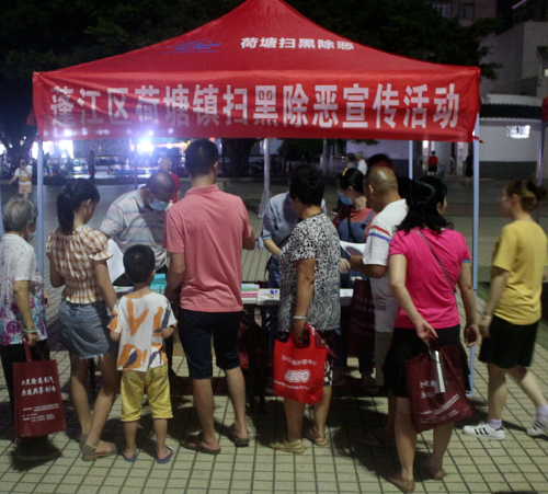 荷塘镇自开展扫黑除恶宣传以来,一直结合实际在宣传的广度和深度上下功夫,积极深入广场、公园、学校等,不断创新宣传形式和开辟新的宣传阵地,加大人流密集区域的宣传密度。