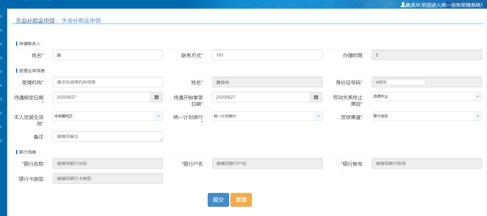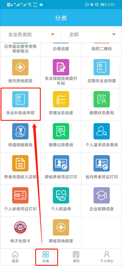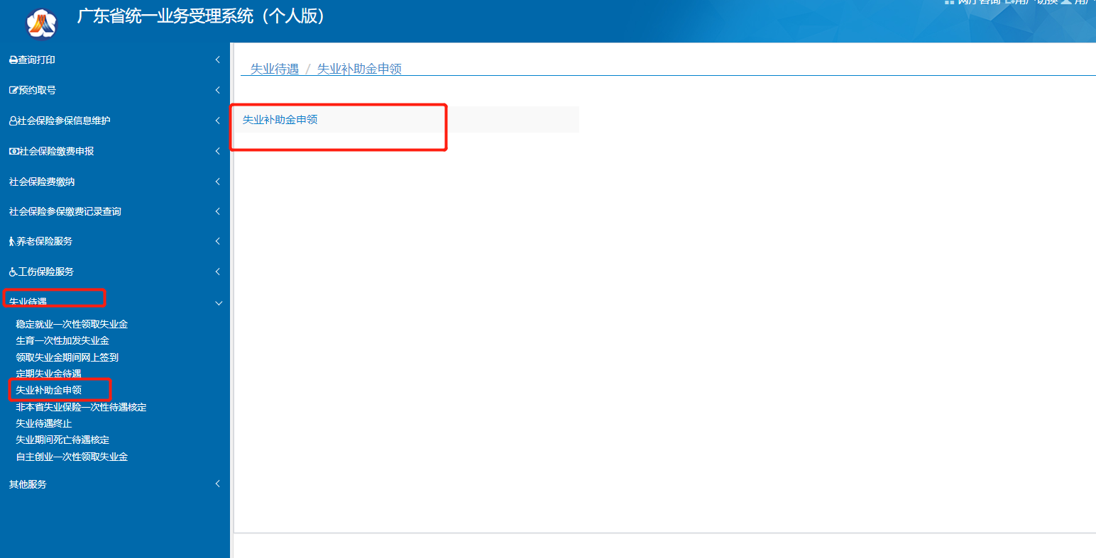菜单:分类-> 失业补助金申领