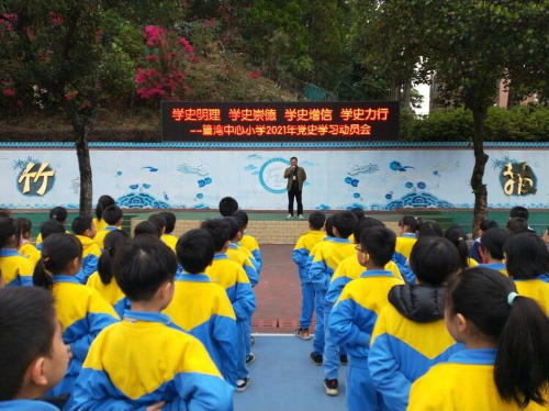 3月23日早上,篁湾中心小学相继开展了以“学史明理,学史崇德,学史增信,学史力行”为主题的教师及学生党史学习动员会。学校党支部书记胡校长在动员会上简述了中国共产党的艰苦奋斗的伟大历程,并在这风雨百年中取得的伟大成就中感受到党的优良作风。学校党支部组织委员李副校长说:周恩来总理在少年时就提出“为中华之崛起而读书”,如今,中华已经崛起,而且不断强大,作为新时代的青少年,我们更应发奋图强、努力学习,做好新时代的接班人!