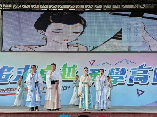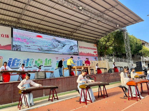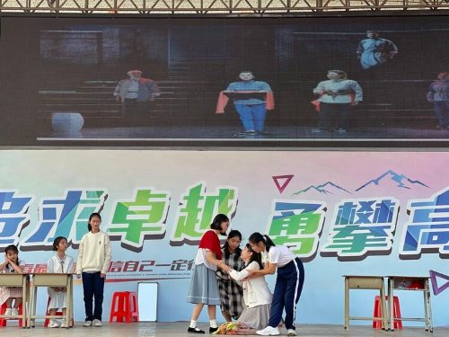 歌舞《少年+教师联盟战线》、诗歌舞《琵琶行》、朗诵《中国红》,一个个精心准备的节目相继登场,师生同台,可谓好戏连台,形式多样,展现了师生奋勇向前的良好精神风貌,践行强国有我的中华国魂,如果信仰有颜色,那一定是中国红!