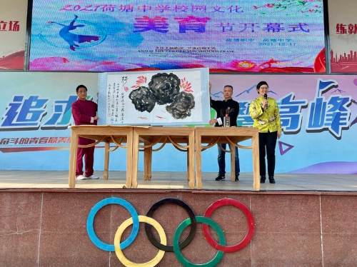 书汉字之美,展国画之韵。伴随着古筝乐声的响起,简校长和徐应文老师、吴文锋老师即场挥墨,那一支支毛笔,在老师们的手中如春山溪流,运用自如,旷达洒脱,一画一世界,一笔一乾坤。绵延上千年的汉字书法和国画艺术是中华民族的瑰宝,是中华文明独特的文字符号和写意艺术,更是中华民族文化的传承。