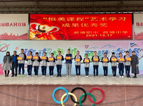艺术点亮生命,美育丰盈人生。为进一步推进新时代中小学美育工作,将学校美育作为立德树人的重要载体,引导学生以“美”的眼光观察生活、体验生活,理解和认识生活中的“真善美”,提高审美能力,促进学生全面有个性的发展,2021年12月17日下午,在荷塘中学党委组织下,我校“以恒铸魂,以美育人”为主题的美育节开幕式拉开帷幕。荷塘镇副镇长黄永光、荷塘中心校校长赵嵩轩、各小学校长、辅导员及全校师生参加了活动。