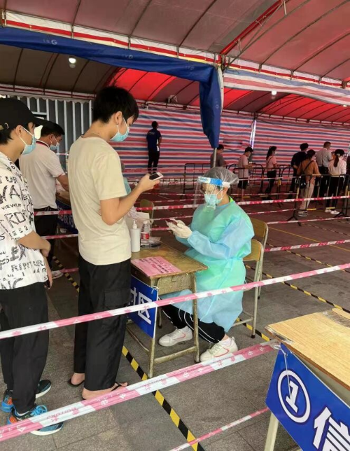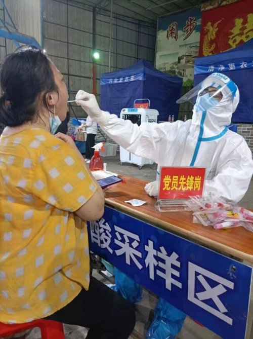 梁国钊儿子梁杰俊在为民村核酸点采样区为群众采样