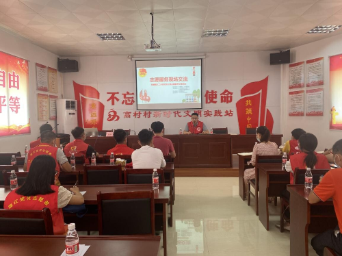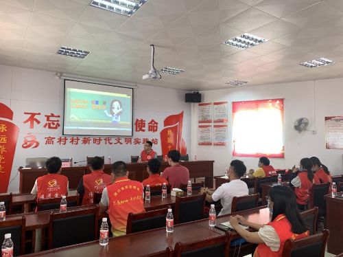随后,活动人员在高村村新时代文明实践站参加交流会,会上首先观看了垃圾分类宣广视频,加深大家对垃圾分类的认识。