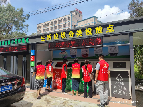 活动人员实地查看了高村村生活垃圾分类投放点,现场观摩村民定时定点分类投放生活垃圾的场景,深入了解投放点指导员和志愿者现场宣传引导的情况。