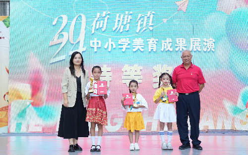 本次展演充分展现了荷塘镇中小学全面贯彻党的教育方针,落实立德树人根本任务,学校美育教育在传承与创新传统文中取得的丰硕成果。最后,大会分别向在本次活动中获得“粤语童谣”传唱和舞蹈展演获得特等奖、一等奖的学校颁发了奖杯、证书。