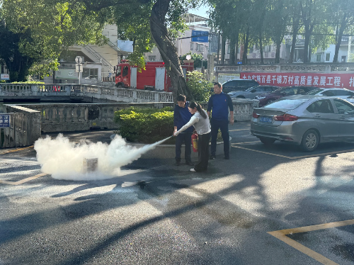 演练模拟了镇政府办公大楼突发火灾的场景。火警响起后,工作人员迅速按照预定的疏散路线,用湿毛巾捂住口鼻、低姿前行,有序撤离至安全区域,整个疏散过程快速且有条不紊。在安全区域,镇专职消防队队员现场讲解并示范了灭火器、消防栓等消防器材的正确使用方法,多名工作人员积极参与实操练习,熟练掌握了灭火技能。