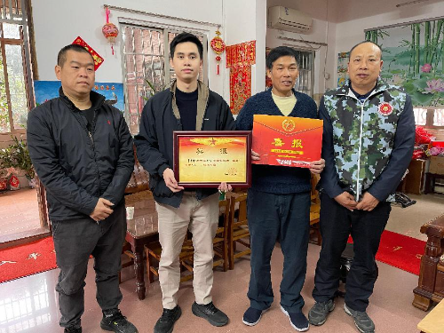 建功在军营,喜报传家乡。2月7日下午,荷塘镇党委委员、服务站站长谭俊锋,镇村(居)两级服务站工作人员来到现役军人李健伟、容嘉骏家中,送上“四有”优秀士兵喜报,并对他们在部队取得的优异成绩表示祝贺。期间,镇服务站站长与军属进行交谈,详细了解他们的家庭生活情况,感谢他们为国家、为部队培养了优秀人才,希望他们继续支持孩子安心在部队服役,争取再立新功,为家乡争光、为家乡添彩。