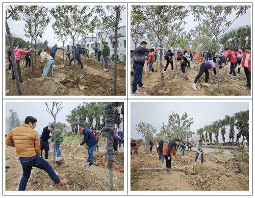 活动现场,人大代表与领导干部、村民群众等一起投入到植树增绿中,共同挥锹、挖坑、扶苗、填土……在大家齐心协力下,400棵黄槐树、黄花风铃树苗迎风挺立,焕发着勃勃生机。