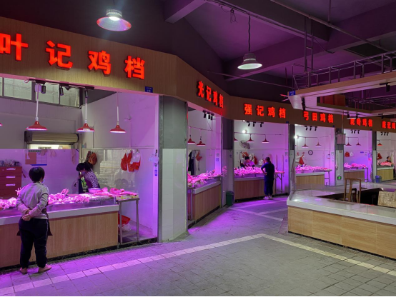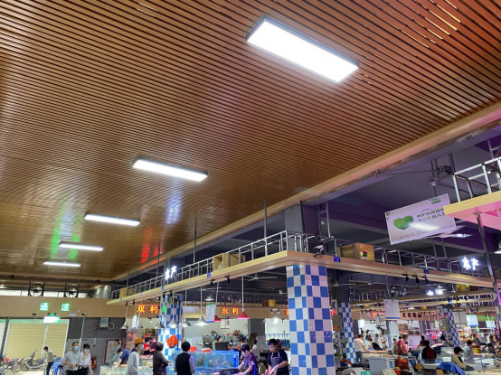 图说:市场内灯光改造前。江门棠下中心综合市场物业管理有限公司提供