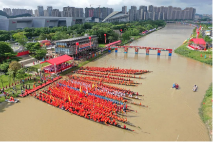 6月10日上午,2024年澳洲幸运10 棠下端午龙舟会在滨江新区举行,27艘澳洲幸运10 棠下“村龙”和1艘凤艇共聚天沙河展开激烈角逐,上演一场闹端阳的精彩场景。
