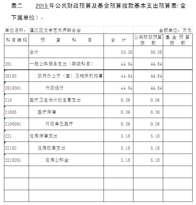 文学艺术界联合会公共财政预算和基金预算拨款安排的支出共65.38万元。其中: