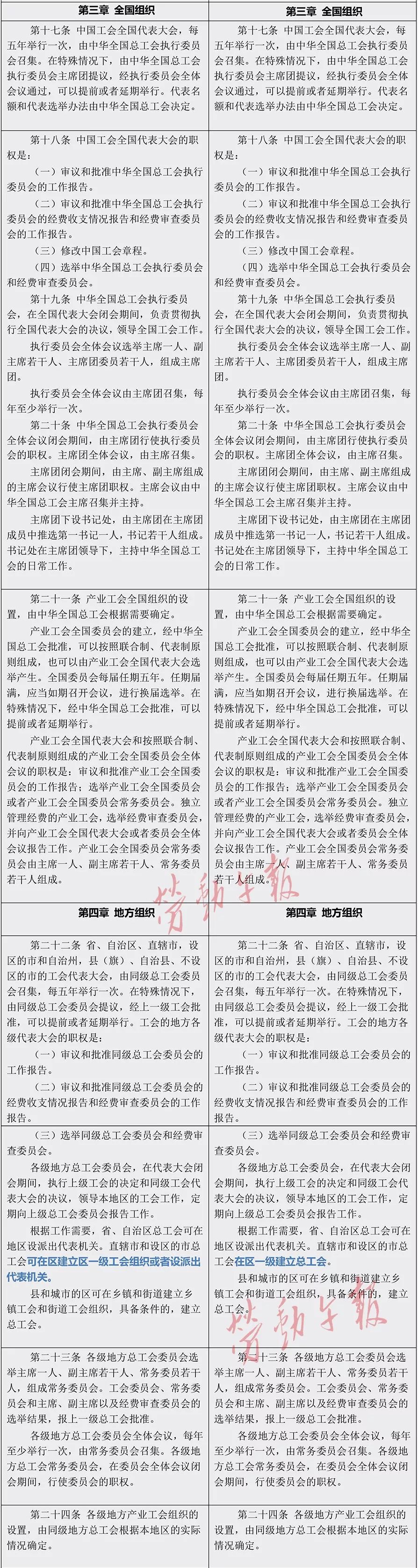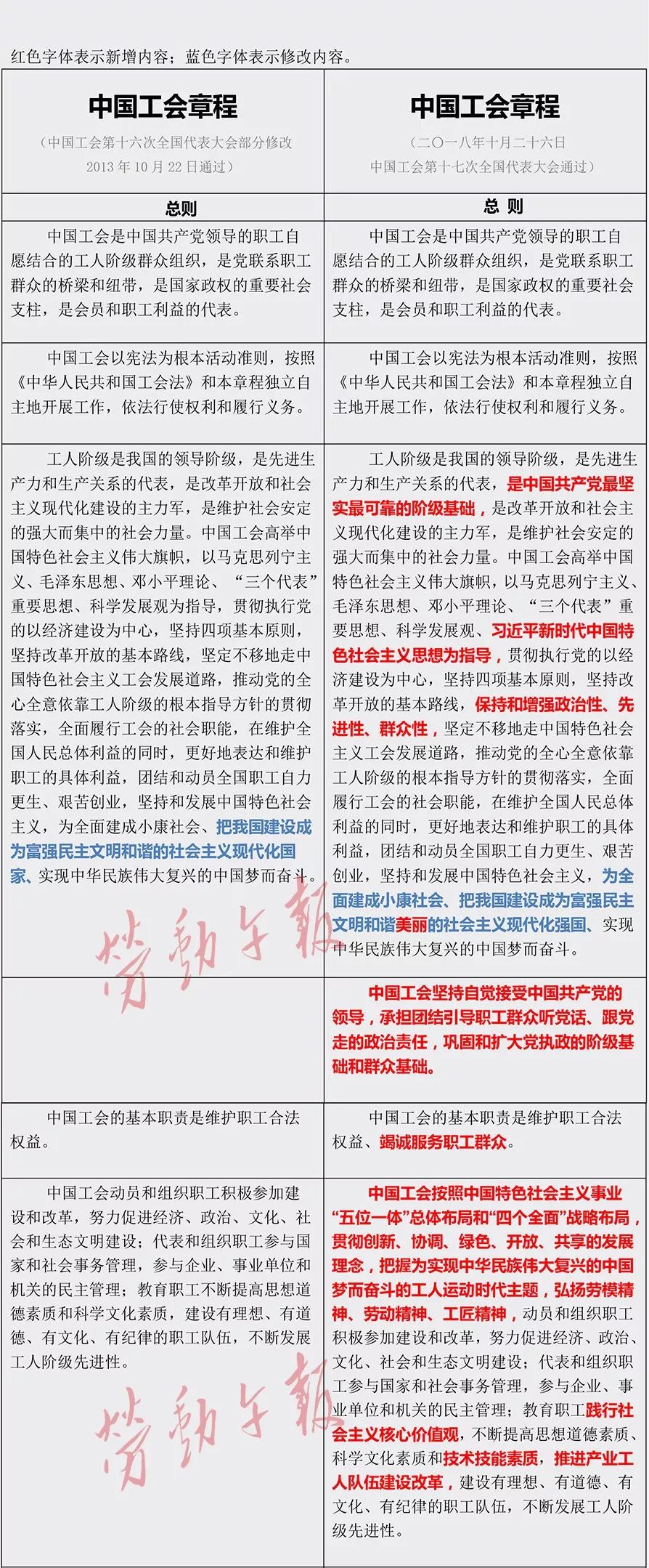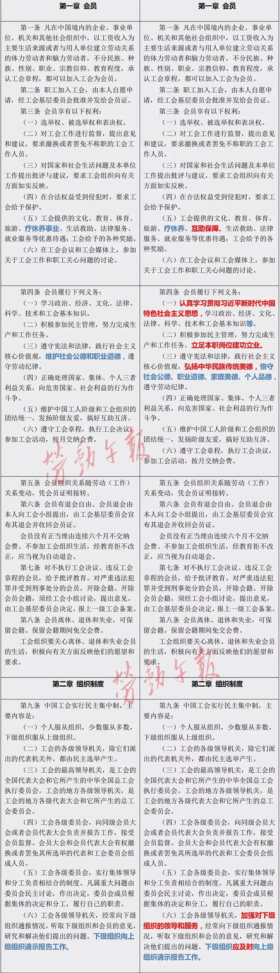10月26日,中国工会第十七次全国代表大会审议并一致通过中华全国总工会第十六届执行委员会提出的《中国工会章程(修正案)》。为大家准备了新旧版《中国工会章程》对比图,方便广大工会干部和职工群众对比学习。