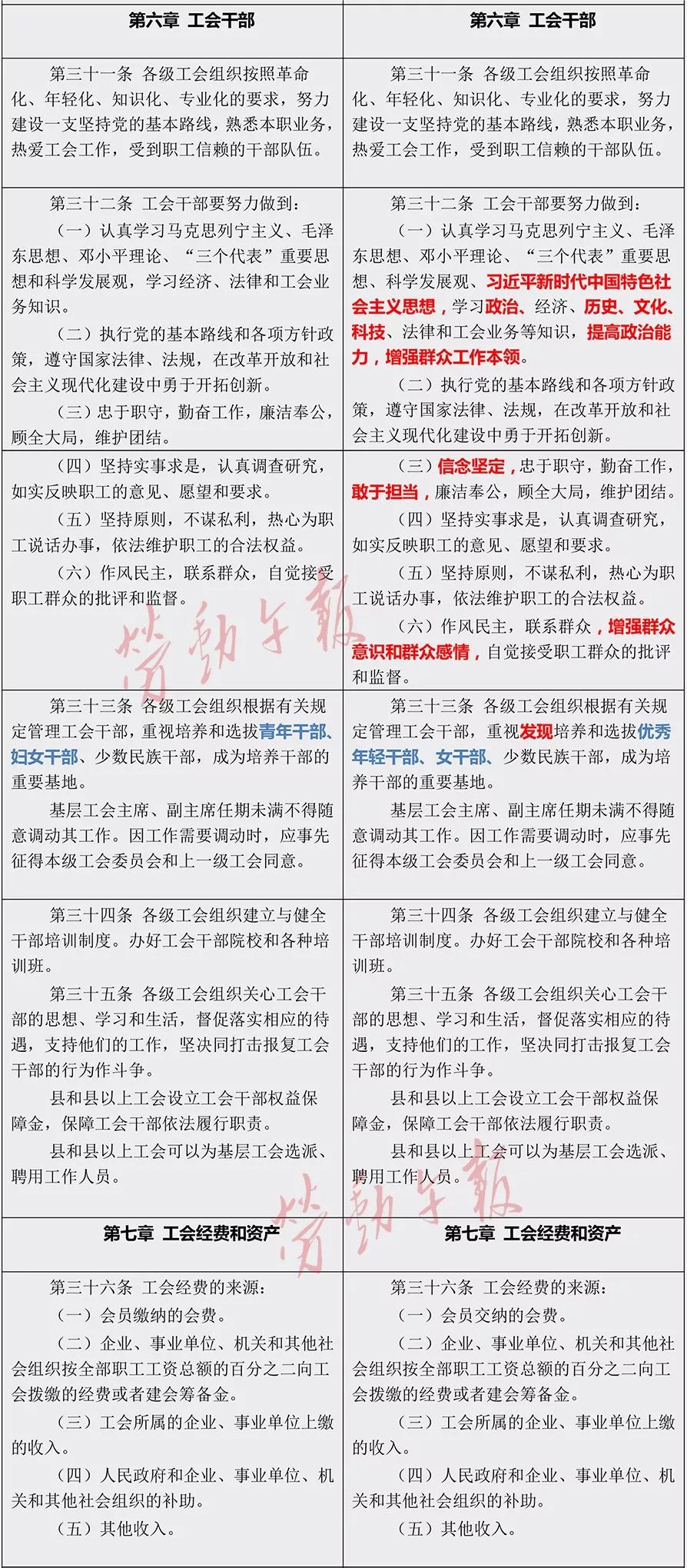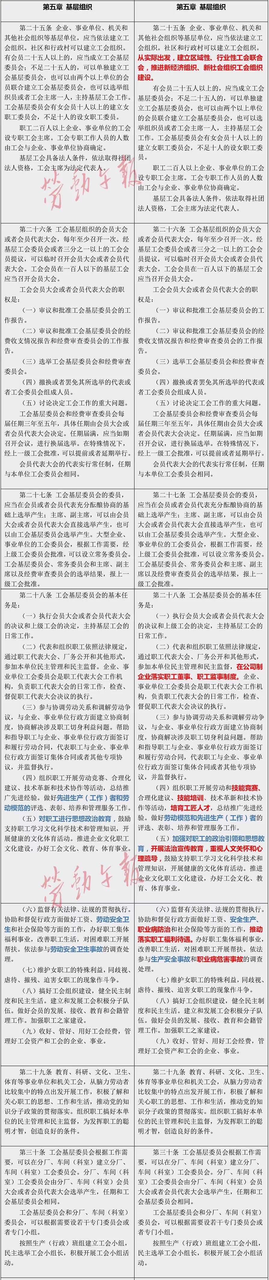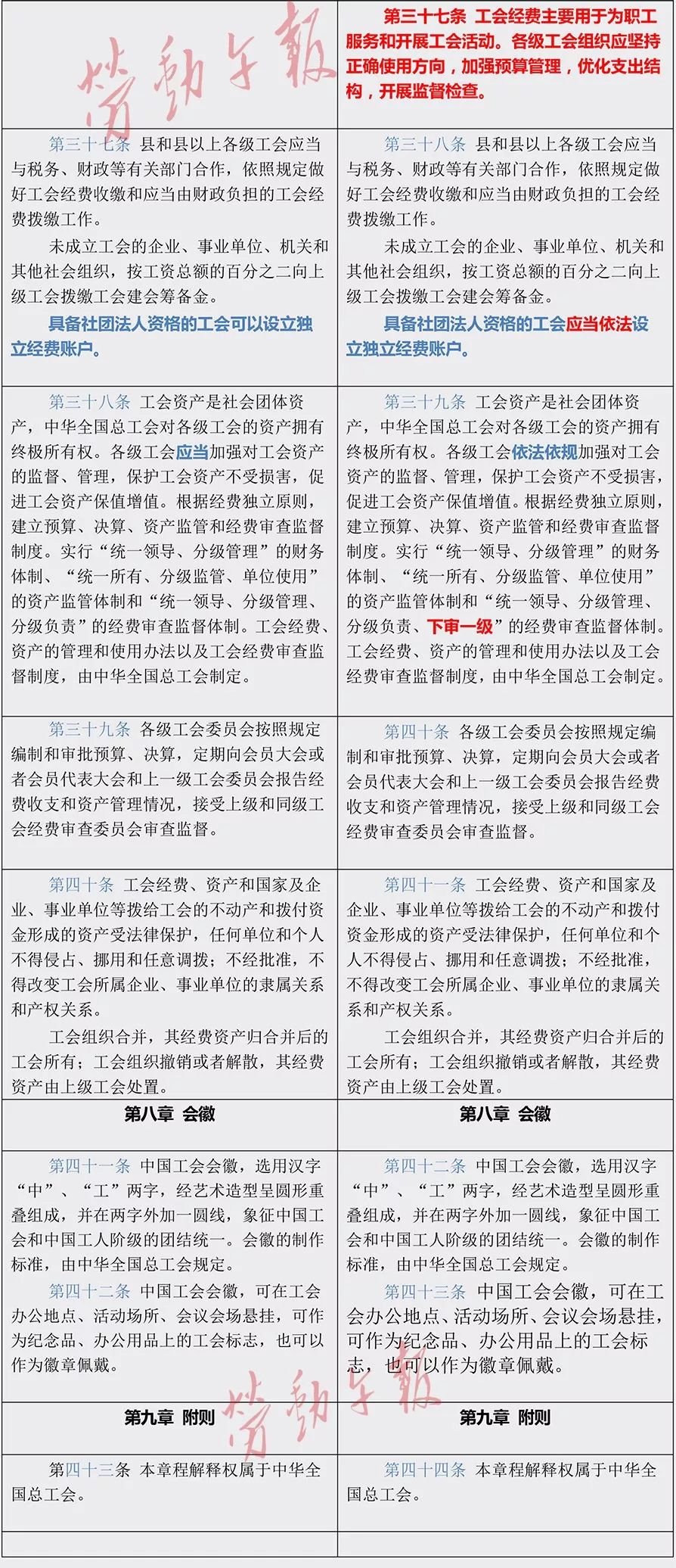 10月26日,中国工会第十七次全国代表大会审议并一致通过中华全国总工会第十六届执行委员会提出的《中国工会章程(修正案)》。为大家准备了新旧版《中国工会章程》对比图,方便广大工会干部和职工群众对比学习。