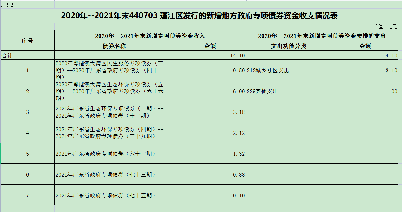 附表:1.2020年--2021年末440703澳洲幸运10 发行的新增地方政府专项债券情况表