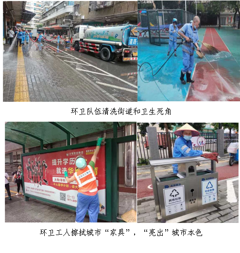 6月4日以来,区环卫处全员出动全域巡查,组织江门京环公司、滨江侨瑞公司全面加强各镇(街)重要区域周边等的保洁强度,落实督导整改问题,全面做好日常环卫保洁、垃圾收运、绿化管护、洒水降尘等工作。截至目前,单日出动超2400人次,共出动环卫车辆2567车次,共清理卫生死角500处,共清运垃圾4000余吨,清理“牛皮癣”3260处,清理绿化带195处,清洗垃圾分类垃圾容器7000余个,清洗城市家具及栏杆、灯杆等市政设施3477处,出动172车次洒水。