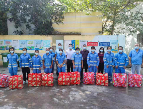 随后,慰问组一行来到新之城垃圾转运站,对江门京环环境服务有限公司的环卫工人代表进行了慰问。