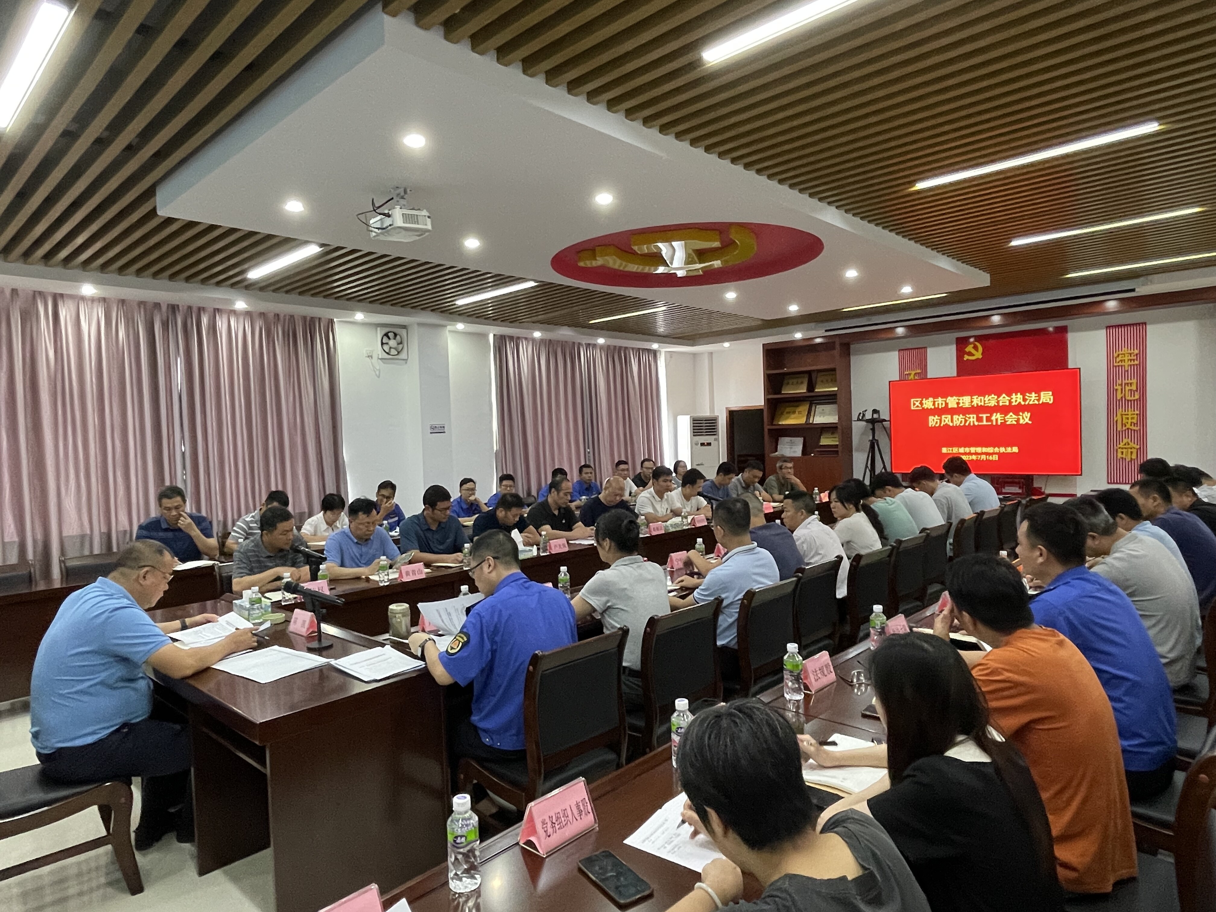 会后,领导干部率先垂范、靠前指挥、分片督导检查城管领域防风防汛工作,重点加强城市易涝点、易倒伏树木、户外广告和招牌设施、在建工地等排查和隐患整治,做到守土有责、守土负责、守土尽责、守土有方。