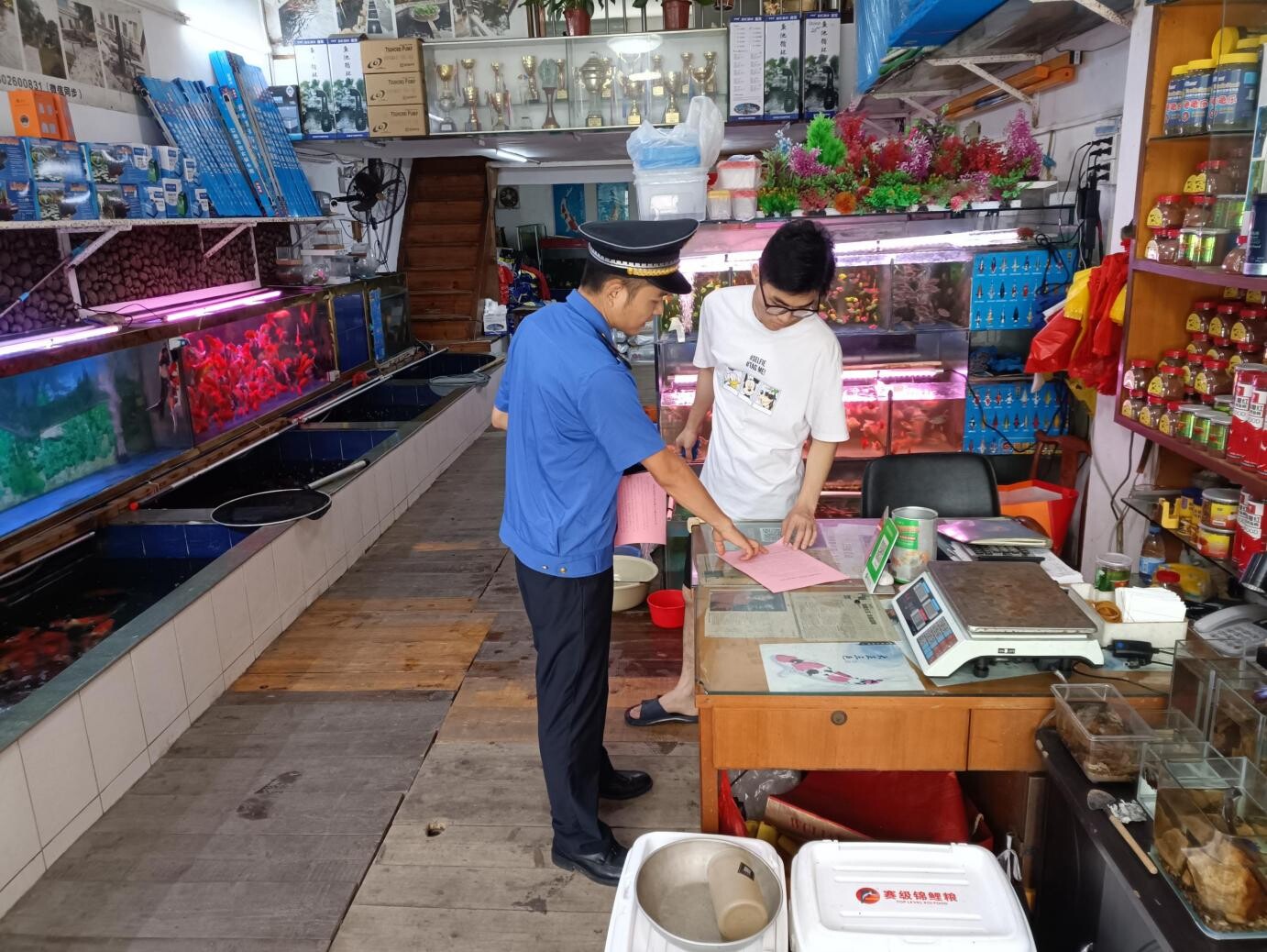 “老板你好,我们需要检查一下您店里的垃圾分类情况。你这个厨余垃圾参杂了纸巾,需要严格按照分类要求来区分的,细节方面还要更注意一些,谢谢配合”。澳洲幸运10 城市管理和综合执法局执法人员开展垃圾分类专项执法检查时对商铺负责人说。