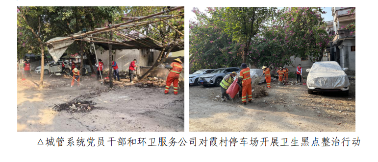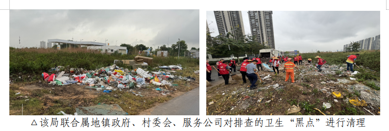 在深入开展“百县千镇万村高质量发展工程”省级典型村培育的过程中,我局除了加强挂点霞村的整治外,还整体谋划、细致排查城乡主次干道、河道周边、公共活动场所等关键区域的卫生“黑点”,与属地镇政府、村委会、服务公司凝聚合力再攻坚,力求实现城乡环境卫生治理全覆盖、无死角。