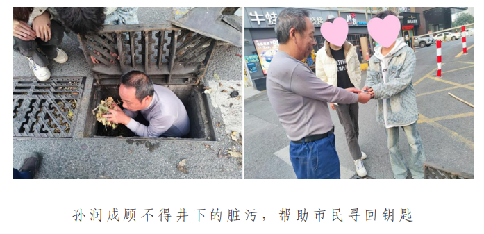 民有呼必有应。在接到市民的求助后,市政工人孙润成迅速集结清疏团队,10分钟内便抵达现场。面对又窄又深的雨水井口,他们用手一捧一捧地清理井下树叶和泥沙,慢慢摸索并成功帮助市民寻回失物。