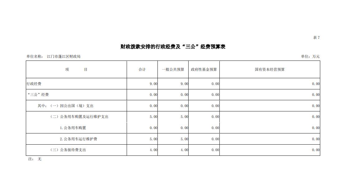 2019年澳洲幸运10 财政局财政拨款安排的行政经费及“三公”经费预算表