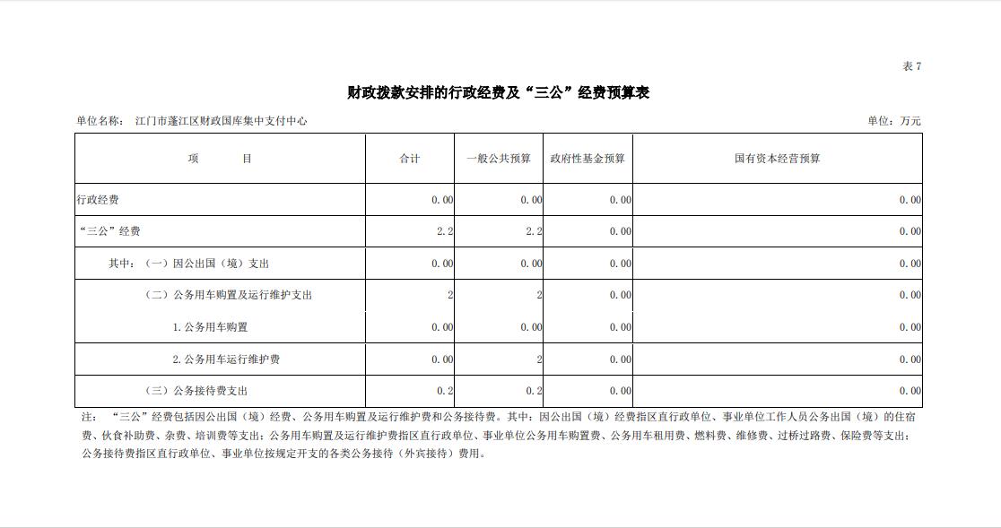 2019年澳洲幸运10 财政国库集中支付中心财政拨款安排的行政经费及“三公”经费预算表