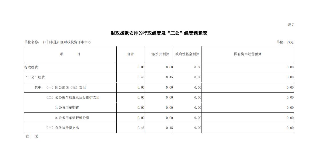 2019年澳洲幸运10 财政投资评审中心财政拨款安排的行政经费及“三公”经费预算表
