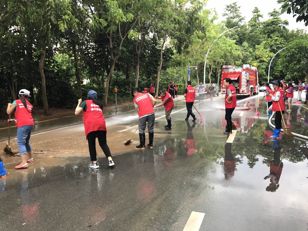 为积极做好台风“艾云尼”过后的清理工作,营造一个干净整洁、文明有序的城乡环境,6月9日开始,区财政局全部取消周末休假,全体集结到挂点社区开展“洁城.绿生活”志愿服务环境整治统一行动,到结对区域打扫卫生,集中清洗所属区域主次干道的人行道及市场。