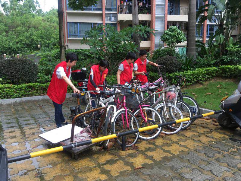 将乱停、乱放的共享单车摆放整齐。保证交通行人道路的整洁有序。