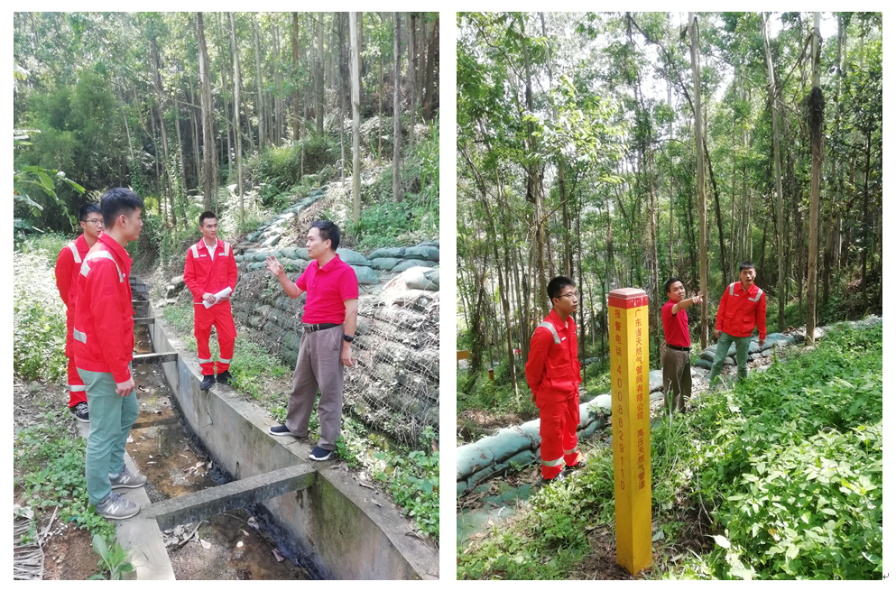 检查组先到国家管网集团广东省管网有限公司杜阮镇龙溪村地质灾害风险点进行检查。该处管道沿斜坡敷设,排水效果较差,降雨情况下易发生滑坡,可能造成管道裸露风险。经查,企业已对该风险点加固挡墙、落实永久截排水、维护管道加密桩和警示牌、加强日常巡查等相关防控措施防范风险隐患。